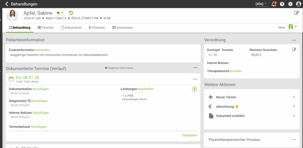 Hier kannst du in wenigen Klicks auch direkt zur Behandlung und den Stammdaten des Patienten navigieren.